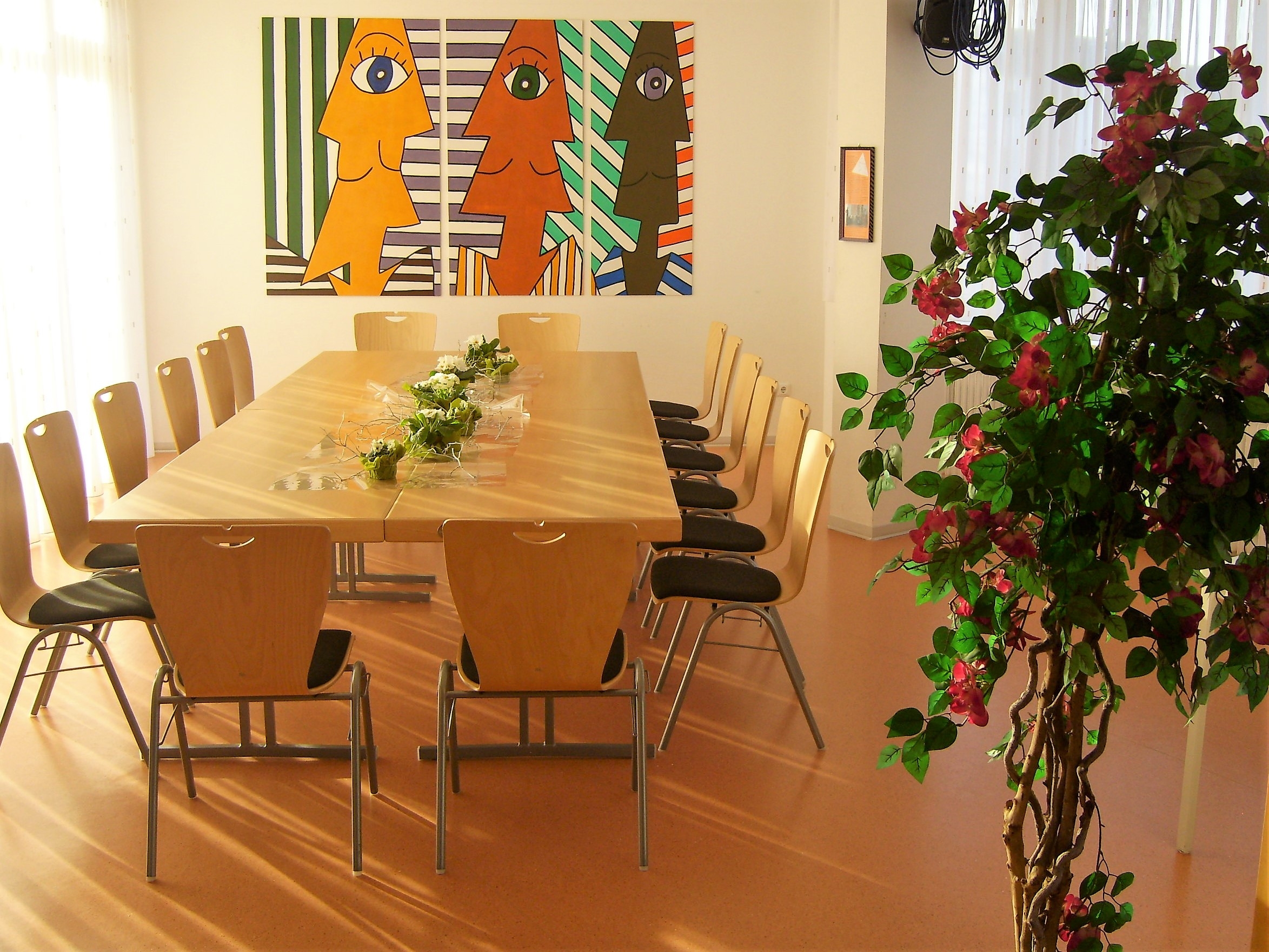 Die Räumlichkeiten im Erdgeschoss können für Tagesveranstaltungen und Feierlichkeiten auch am Wochenende angemietet werden. In den zwei Räumen ist Platz für maximal 80 Personen. Auch steht eine komplette Küchenausstattung zur Verfügung, mit der man bei Feierlichkeiten auch Kochen kann. So entsteht eine familiäre Atmosphäre, die sich positiv auf das gemeinsame Feiern auswirken kann.