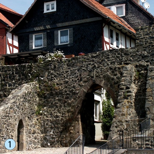 Unser Stadtrundgang beginnt am Neuen Tor (1), dem einzigen Stadttor, das bis heute erhalten geblieben ist. 1536 ließ Landgraf Philipp den ursprünglich eigenständigen Stadtteil „Freiheit“ eingliedern, zu diesem Anlass wurde das Neue Tor in die Stadtmauer gebrochen.