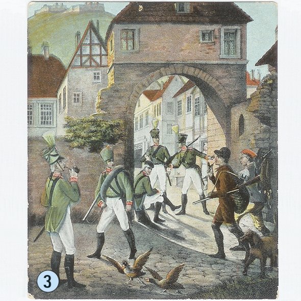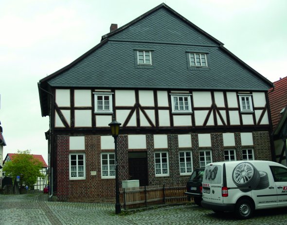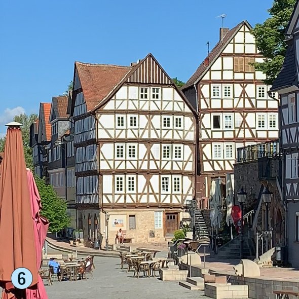 Dreht man nun Landgraf Philipp den Rücken zu, schaut man auf das Geburtshaus von Ludwig Mohr (9) am Marktplatz 11. In der Erzählung „Rot-Weiß“ von 1869 berichtet der Schriftsteller über den „Dörnbergschen Aufstand“ gegen Jérôme Bonaparte, der in Homberg seinen Anfang nahm.