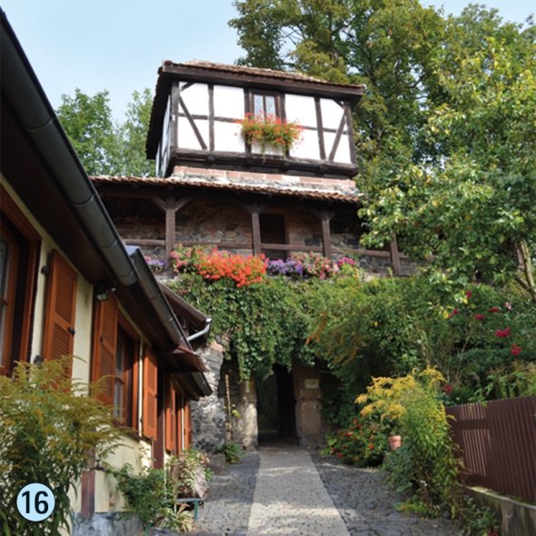 Nun gelangen wir zum malerischen „Pförtchen in der Hochzeitsgasse“ (16), die ursprünglich einzige Fußgängerpforte zur Hohenburg mit angrenzenden Stadtmauerteilen und Wehrgang.