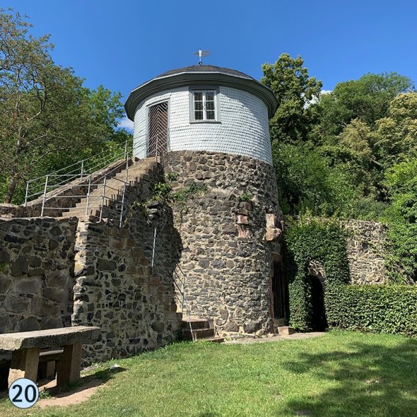 Der nächste Anlaufpunkt ist der Dörnberg-Tempel (20), der auf den Fundamenten des „Bächtenturms“ errichtet wurde. Dieser Ort diente 1809 wohl als Treffpunkt der Teilnehmer des Dörnberg-Aufstandes.