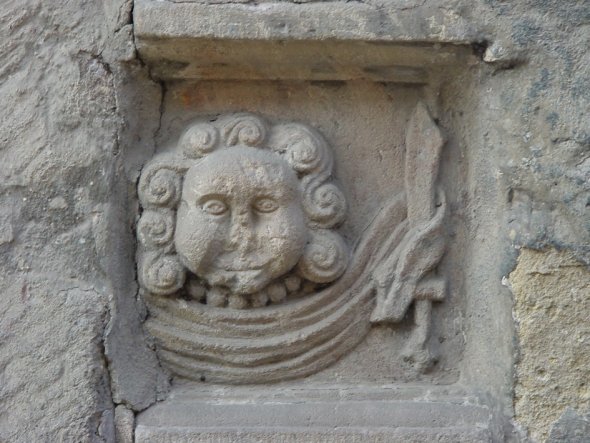 Der Weg führt nun zurück zum Rathaus zur sog. „Simbelschanze“, an der das Relief Hans Stadens (25) angebracht ist, einer der wichtigsten Persönlichkeiten aus Homberg. Staden wurde 1526 in Homberg geboren und wurde durch seine Reiseberichte nach Brasilien, der „Wahrhaftigen Historia“ von 1557, berühmt.