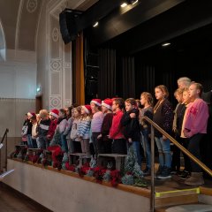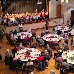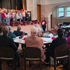 Mit einem stimmungsvollen vorweihnachtlichen Programm begrüßten die 2. und 3. Klassen der Stellbergschule am Dienstag, 2. Dezember 2025, die zahlreichen Gäste der traditionellen Seniorenadventsfeier in der Homberger Stadthalle. Die Schülerinnen und Schüler eröffneten den Nachmittag mit einem musikalischen Beitrag auf der Blockflöte, gefolgt von bekannten Liedern wie „In der Weihnachtsbäckerei“ und „Alle Jahre wieder kommt das Christuskind“. Auch musikalische Beiträge von einem Cello und Klavier sorgten für besondere musikalische Momente. Die Kinder sangen mit den Älteren auch einige Adventslieder.
