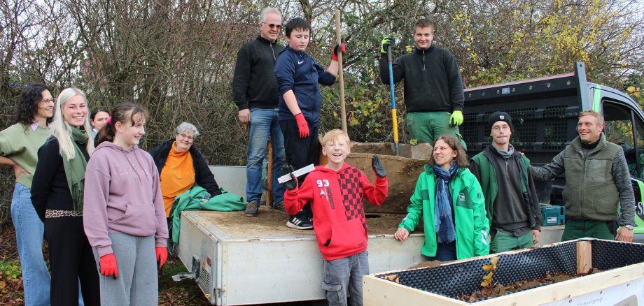 Im Homberger Jugendzentrum am Davidsweg 19 wird es im nächsten Frühjahr „grün“. Die Voraussetzungen für das Bepflanzen zweier Hochbeete schufen vor kurzem Jugendliche aus dem JUZ zusammen mit Erik Göttig und seinem Team von der Fachfirma „Grün & Stein“ aus Melsungen-Röhrenfurth. Sie bauten nicht nur zwei Hochbeete, sondern füllten sie auch noch mit dem nötigen organischen Material und einer Pflanzerde auf. Enric Andermann setzte sein ganzes Körpergewicht dafür ein, dass das Schnittgut komprimiert wird als Grundlage und Unterfütterung für die Pflanzerde. 1,064 Kubikmeter Biomasse inklusive Pflanzerde fasst ein solches Hochbeet.