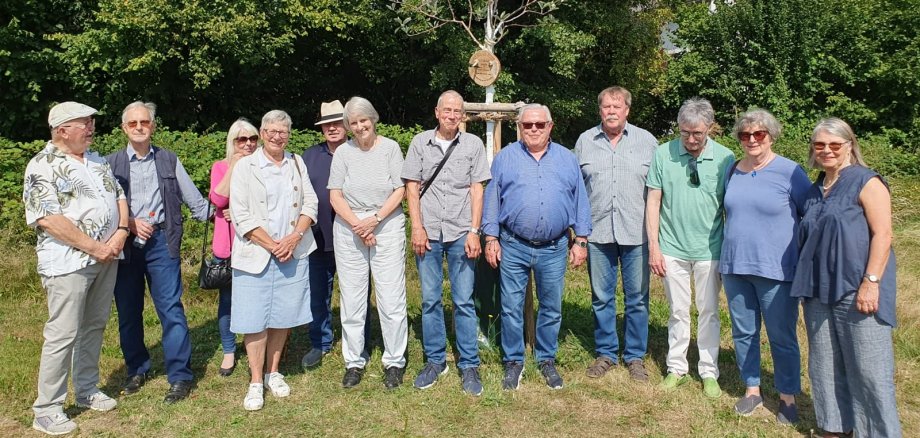 Der Abiturjahrgang ´69 stellt seinen Baum mit einem Schild vor