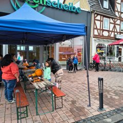 Das Einkaufszentrum Drehscheibe und der Homberger Einzelhandel waren bei dem verkaufsoffenen Sonntag wieder mit tollen Aktionen dabei. REWE Mohr hatte einen Cocktailwagen für seine Gäste vor den Eingang des Marktes gestellt. Die Jugendfeuerwehr Homberg und das DRK Schwalm-Eder hatten große Resonanz auf der Ziegenhainer Straße. Die Stadt Homberg bot dort das traditionelle Kürbisschnitzen an, welches regen Zulauf hatte.