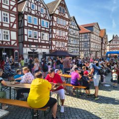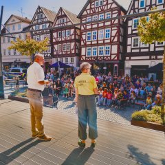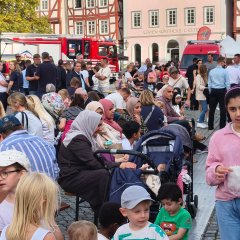 Es tummelten sich viele Kinder mit ihren Eltern auf dem Homberger Marktplatz. Rund 1500 Gäste waren über den Nachmittag gekommen. Stadtrat Joachim Jerosch konnte zusammen mit der Leiterin des Familienzentrums Martina Theiss in seiner Eröffnungsrede schon zu Beginn viele von Ihnen begrüßen.