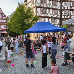 Zum Mitmachen war denn für jeden Geschmack etwas dabei: Basteln, Barfußpfad, Bewegungsbaustelle, Kinderschminken bis zu Sportspielen. Auch der Platz an der Engen Gasse, hinter dem Marktplatz gelegen, füllte sich zunehmend. Die kleinen Gäste des Familienfestes erwarteten lustige Spiele, Bastelaktionen, Leckereien und vieles mehr. Eltern konnten sich über das reichhaltige Unterstützungsangebot für Eltern und Familien informieren. Denn viele waren vor Ort, wie die Homberger Kindertagesstätten, der Tageselternverein, die Frühen Hilfen und die Elternschule, um nur einige zu nennen.