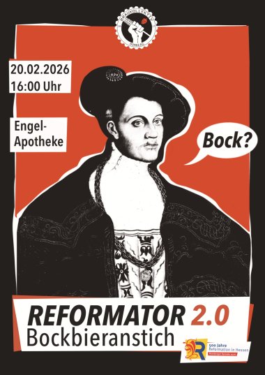 Unter den wohlwollenden Augen Philipps des Großmütigen jedenfalls, denen seines Standbildes auf dem Homberger Marktplatz, findet am 20.02.2026 um 16.00 Uhr der feierliche Reformator-Anstich durch den Homberger Bürgermeister Herrn Dr. Nico Ritz statt. Interessierte Gäste sind herzlich willkommen, um sich von einer kulinarischen Seite der Reformation berauschen und überzeugen zu lassen.