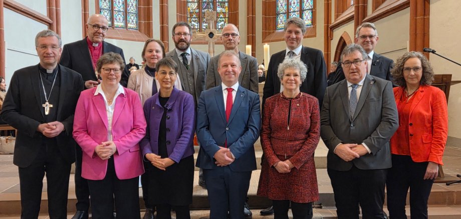 Gemeinsam mit Dekanin Sabine Tümmler, Präses Dr. Michael Schneider (EKKW) und Präses Dr. Birgit Pfeiffer (EKHN) hieß Ritz die Gäste willkommen. Das Jubiläum sei ein gemeinsamer Auftrag für Gegenwart und Zukunft, unterstrich Pfeiffer: „Es geht um Begegnung, Gestaltung und Erneuerung.“ Sabine Tümmler sprach von einem Jahr, in dem „viele Köpfe, Hände und Herzen für Glauben, Demokratie und Gemeinschaft einstehen“.