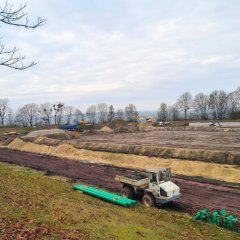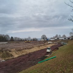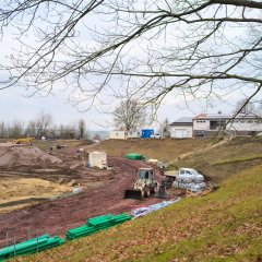 Die Firma Klei, die auch schon den Stadtpark gestaltet hat, arbeitet mit Hochdruck im Stadion, damit vor stärkeren Temperatureinbrüchen die unterirdischen Arbeiten weitestgehend abgeschlossen werden können. Der ausgelagerte Weitsprung mit Calisthenics- Anlage ist vor Ort schon zu erkennen.