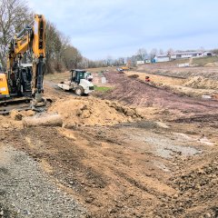 „Da wir hier am Stellberg sind, finden sich auch viele felsige Materialen wieder. Gesteinsschichten und lehmig dichter Boden finden wir auf dem Areal vor. Keine leichte Angelegenheit für die Arbeiter vor Ort“, erklärt Dörrbecker.