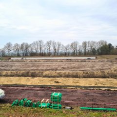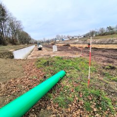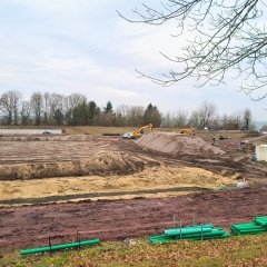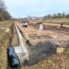 Derzeit wird im Stadion auf dem A-Platz alles gemacht, was mit Versorgungstechnik zu tun hat. Be- und Entwässerungsleitungen, Versorgungsleitungen, Strom und Fundamentherstellung. Auch die Rasenschicht soll bearbeitet werden.
