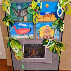 Im Anschluss an den offiziellen Teil des Festakts nutzten die Gäste beim Empfang im Foyer der Stadthalle die Gelegenheit zu persönlichen Gesprächen und zum Austausch. Begleitend wurde eine Kunstausstellung zum Thema Brasilien und Hans Staden präsentiert, die von der Kunstlehrerin Beate Voiges betreut wurde.