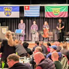 Den musikalischen Auftakt gestalteten Schülerinnen und Schüler der Bundespräsident-Theodor-Heuss-Schule unter der Leitung der Musiklehrkräfte Silvia Kordes und Oliver Schaad. Mit dem brasilianischen Lied „Azulão“ eröffneten sie den Festakt und begleiteten die Veranstaltung anschließend mit weiteren musikalischen Beiträgen, darunter Martin Luthers „Ein feste Burg ist unser Gott“ sowie das brasilianische Stück „Brazil“ von Ary Barroso.